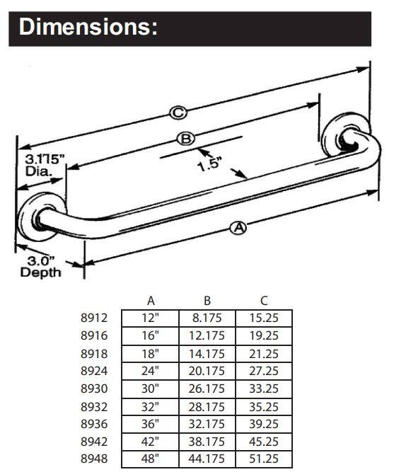 | Certification, Codes, Standards | ADA Compliant; ANSI; ASTM Specified; CSA Certified |