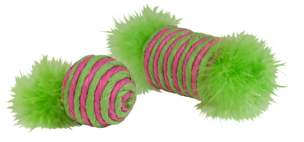 Kylie's Brights Raffia Spool And Ball With Feathers Cat Toy, 2-Pack