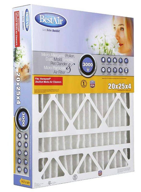 BestAir Air Filter, Electrostatic, 13 MERV, 99 % Filter Efficiency, 24-5/8 in Length, 19-3/4 in Width, 4-1/4 in Thickness, Suitable for: Honeywell F100B1032, F100B1040, F100F1087, F100F1095, F100F2044, F100F2051, F200E1037, 203720, F35/35R FC35A1027, F100/150 FC100A1037, F200 F200E1037, CF100A1025, CF100A1058, FC100A1037, FC200E1037, POPUP2025, MERV 13 Air Cleaner