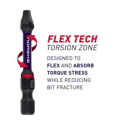 - Flex tech torsion zone absorbs high torque stress and reduces bit fracture