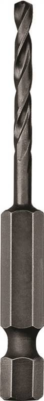 Designed to be used in a 1/4" hex shank impact drivers to drill holes from 1/8" to 1/2" holes in metal, wood, or plastic. Pilot point ensures a true start and eliminates bit walking. The solid one piece is more durable and the web taper increases the rigidity for less chance of bit breakage. HSS-BLACK OXIDE HEX SHANK Dia x OA Lgth In=11/64x2-15/16