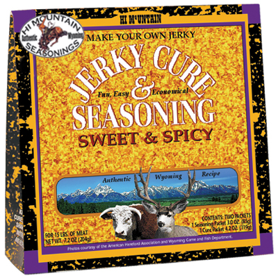 Sweet & Spicy, the best of both worlds. Use with beef, wild game, poultry, fish, or any meat of your choice. Each kit seasons up to 15 lbs. of whole muscle meat or 10 lbs. of ground meat. Kit includes one package of cure, one package of seasoning, a shaker bottle for easy mixing and detailed instructions.
