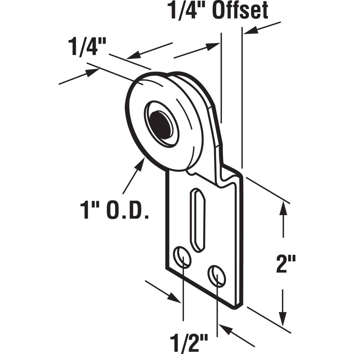 Wardrobe Door Roller Assembly, 1-inch, Plastic, Convex, Front Single wheel; top hung; side mounting; 1/4-inch offset adjustable bracket round edge plastic wheel; fits 3/4-inch to 1-3/8-inch thick doors. Used on Cox door systems.