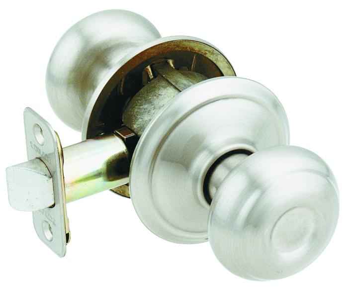 Schlage F Series F10VGEO619 Passage Knob, Georgian, Round, Metal, Satin Nickel, Full Lip Round Corner Strike