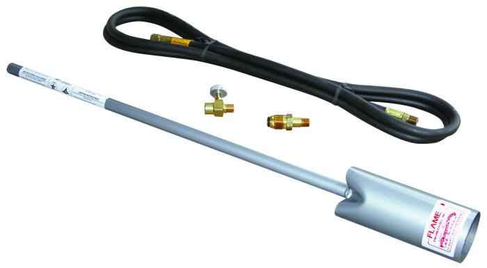 Use to burn heavy brush and stumps, melt snow and ice, thaw frozen metal pipes, heat metal, tar & asphalt, and to sterilize cages and confinement areas. Kit includes U.L. listed P.O.I. cylinder connector with built-in safety check, flame adjusting needlevalve, and pipe thread compound. CSA certified. Made in the U.S.A. ECONOMY - HAND-HELD 500,000 BTU