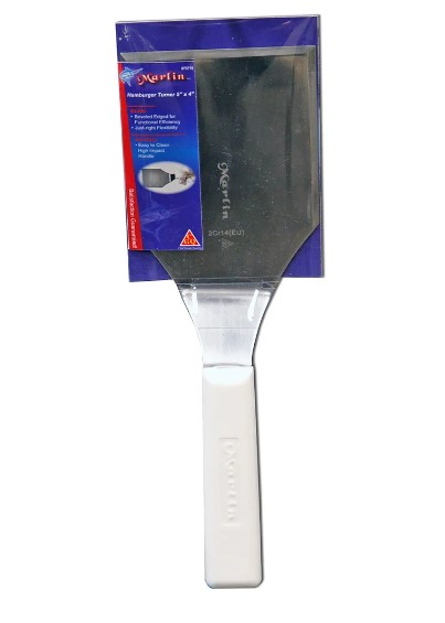 Marlin Hamburger Turner is chef grade quality. Made with a handle able to withstand high temperatures and a carbon steel blade made to last.