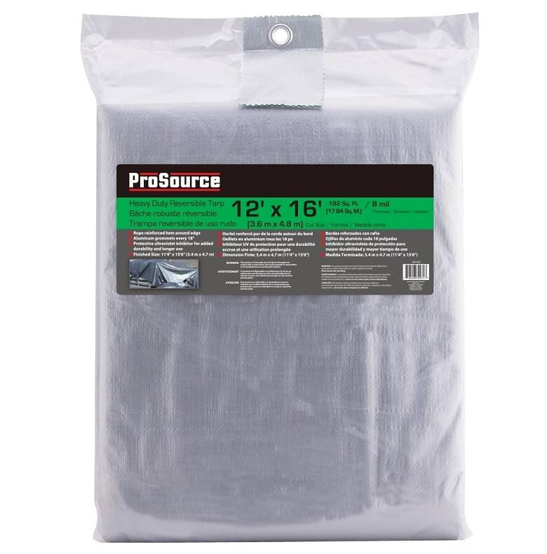 UV and sunlight-resistant formula for extended outdoor use. Lasts 3 to 4 times longer than regular tarps. Constructed with 12 x 12 strands per sq-in and thicker layers of polyethylene. Rust-resistant aluminum grommets are spaced every 18 in. Tear-and water-resistant.