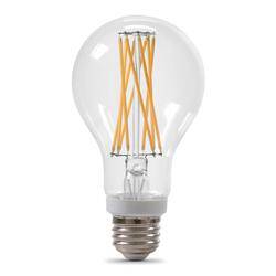 Enjoy all the benefits of advanced LED energy-saving technology with the Feit Electric BPA19100CL927CAFI2RP 100 W A21 LED light bulbs with traditional glass design. This 2700K soft white bulb is dimmable and will replace 100 W equivalent incandescent bulbs. It produces a similar light output (1500 Lumens), uses 12 W of electricity and is omni-directional. Get instant on to full brightness with relatively cool running performance. Feit Electric glass filament white A21 light bulbs have an average life of 15,000 hrs are RoHS compliant and are 100% mercury-free. Choose a dependable bulb for residential or commercial applications.
