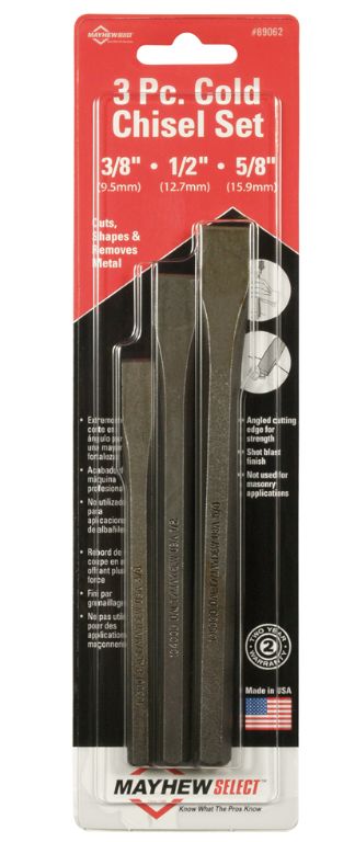 Cold Chisel Set 3-Pack, 3/8, 1/2, 5/8-inch.
