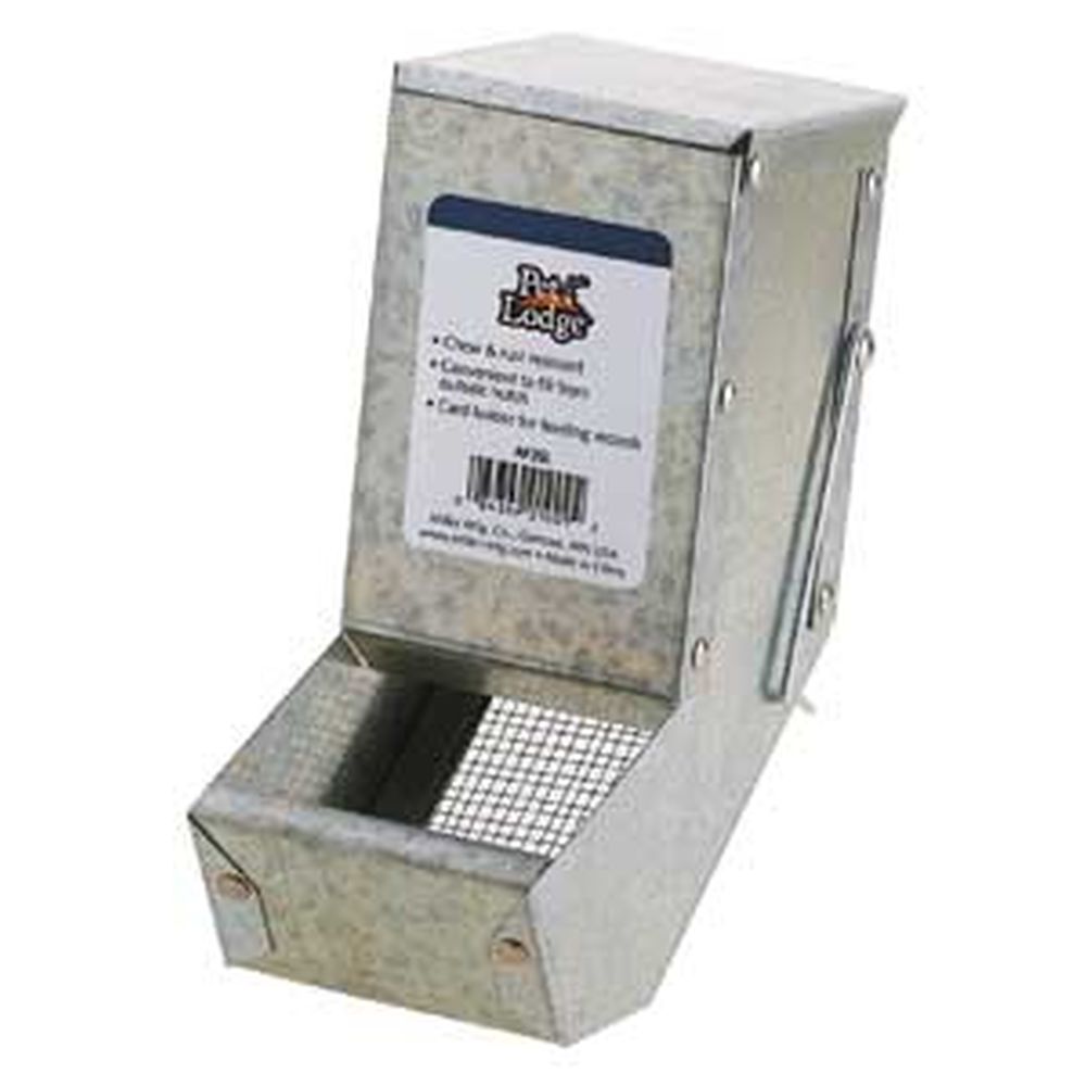 Rabbits and other small animals will not eat the fines (powdery residue) that collect in pelleted or grain feeds. If left in the feeder, these can attract harmful molds. This rabbit and small animal feeder has a wire mesh bottom that sifts fines out so they fall into the litter below. Includes independent wire hooks so the feeder can be attached to the inside of the hutch, or for more convenient filling to the outside with some wire cutting. Gravity design allows feeder to dispense several days worth of feed a little at a time. Features hinged metal lid for covering the feed. Made of chew-proof, rust-resistant, heavy-gauge galvanized steel. Measures 5.5-inches long by 3.125-inches wide by 7.125-inches high.