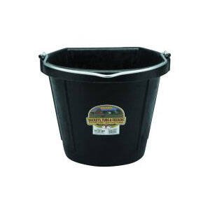 Little Giant flat back buckets are a favorite on farms and ranches everywhere. The flat back fits more compactly for hanging against a wall or fence, plus it makes hauling heavy loads a lot easier. Our design features a wider opening, with convenient stacking ribs so the buckets are easier to pull apart when stacked, plus finger grips for easier pouring and graduation marks for measuring. Molded from the finest corded rubber on the market, nothing matches the pliability and strength of DuraFlex rubber. Crush-proof, crack-proof, freeze-proof so you can leave them outside year-round. Features a heavy-duty steel handle with a rugged eyelet and handle connection.