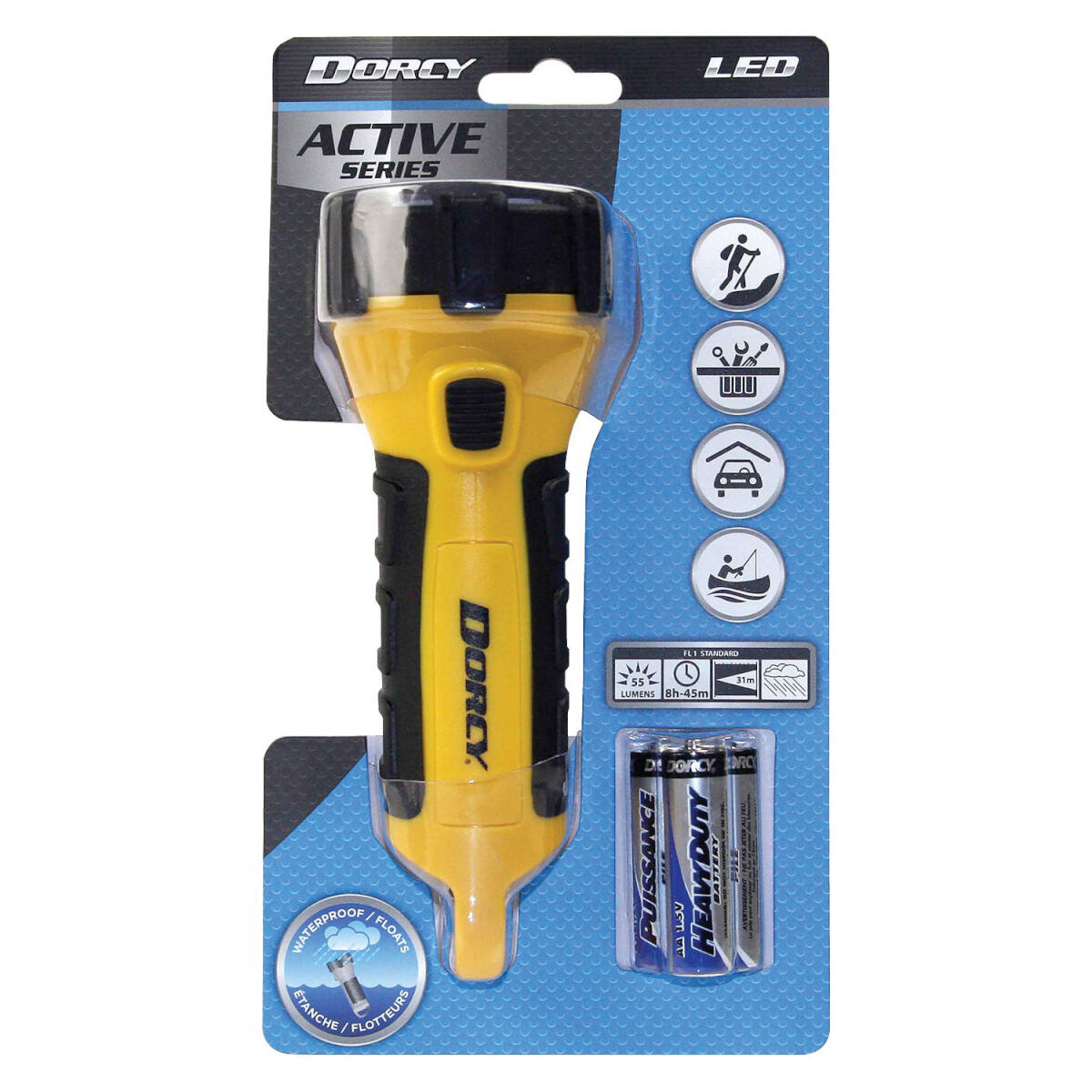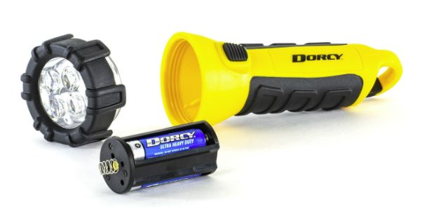 The 3AA - 4 LED carabiner floating flashlight features a waterproof design, 55 Lumens of light, over 8 hrs of runtime and the ability to float in water. The light is constructed with shock absorbing rubber around the head and body for a slip-free, comfortable grip, as well as added stability and durability. The Floating Flashlight has a unique built-in tail cap carabineer clip and comes complete with 3 AA cell batteries.