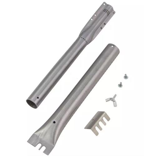 This universal stainless steel tube burner kit comes with flexible tubes that have insect guards. It works for burners from 14 in to 17.75 in One burner in each back. Comes with electrode and wires. for easy setup.
