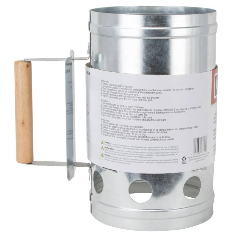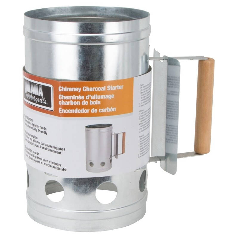 Omaha Chimney Starter, Grate Shape: Square Steel Plate with Round Holes, Straight Grip Handle, Wood Handle, Steel, Galvanized, Silver, 6-3/4 in Dia, 11 in H, Suitable for: Charcoal