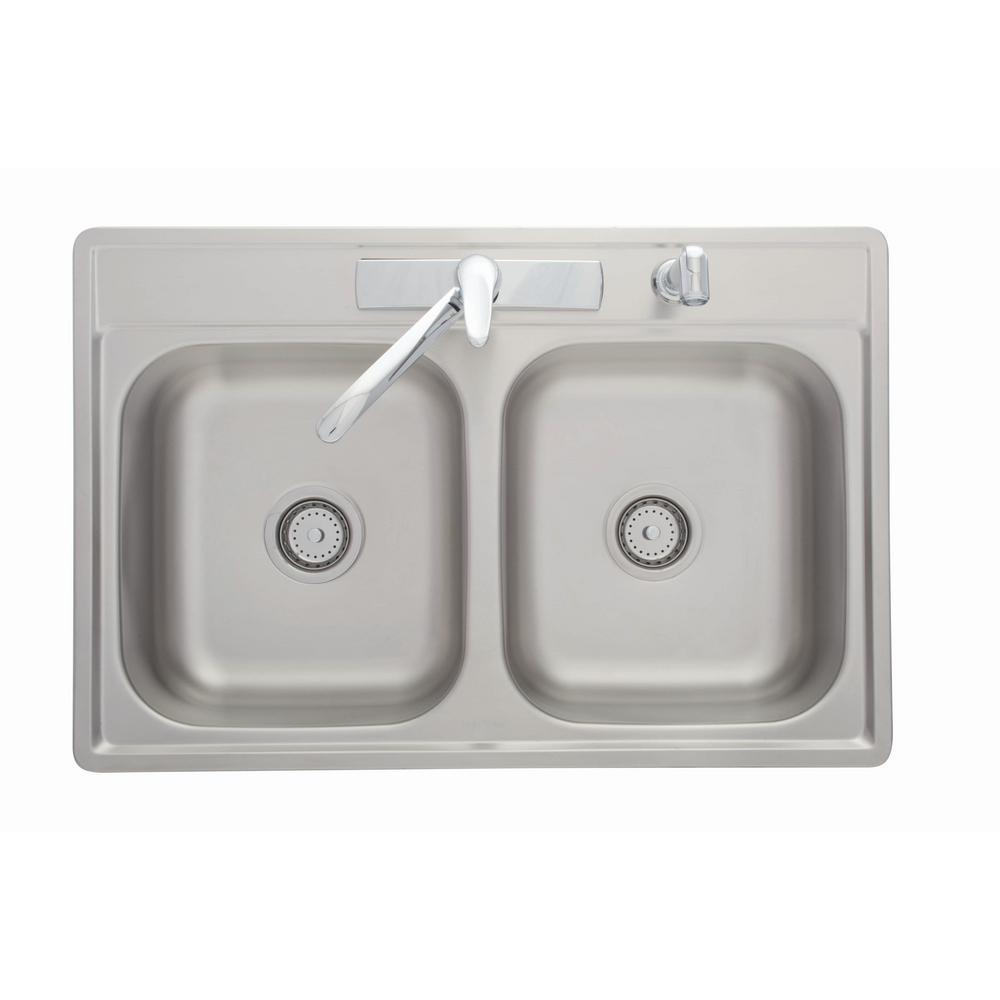 33-Inch Drop-In Stainless Steel 4-Hole Double Bowl Kitchen Sink With Faucet