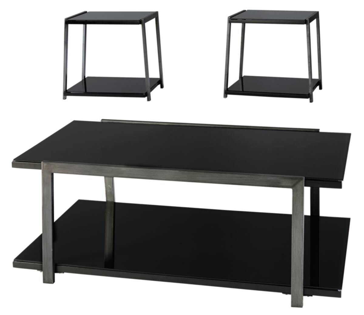 Set the stage for a highly contemporary aesthetic with this coffee table set. Crisp, clean and delightfully different, the coffee table sets blend of black glass with aged silvertone metal makes a high-style fashion statement.