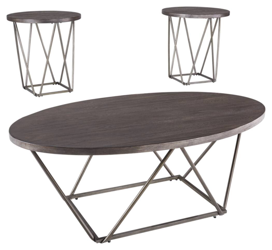 Crossover to contemporary style with the smooth architectural look of this 3-piece occasional table set. Simple, yet unique in its own way, the tables have angular bases that support elm veneer tops full of textural beauty. The oval cocktail table in particular has a wow factor found with its expanded bridge truss base. This set will add an amazing modern aesthetic to any living area.