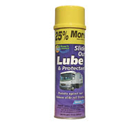 Make slide outs operate smoothly without sticking. Spray-on lube leaves a dry film that repels dirt and grime and protects against rust and corrosion. Aerosol can.