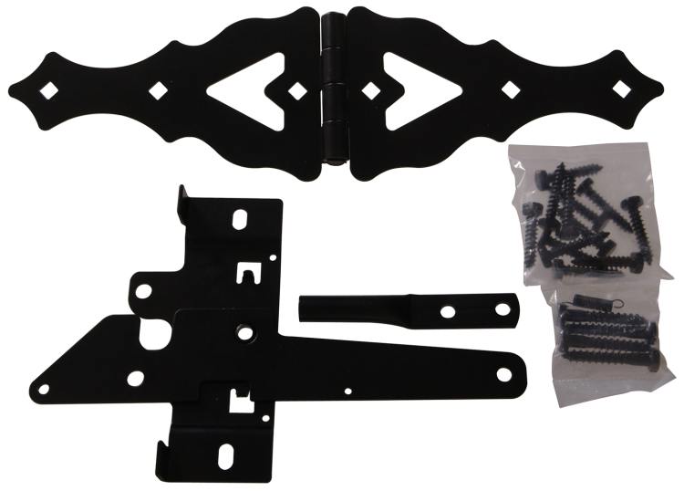 Black - Includes: Post Mount Gate Latch (1) and 8 in Ornamental Strap Hinges(2)