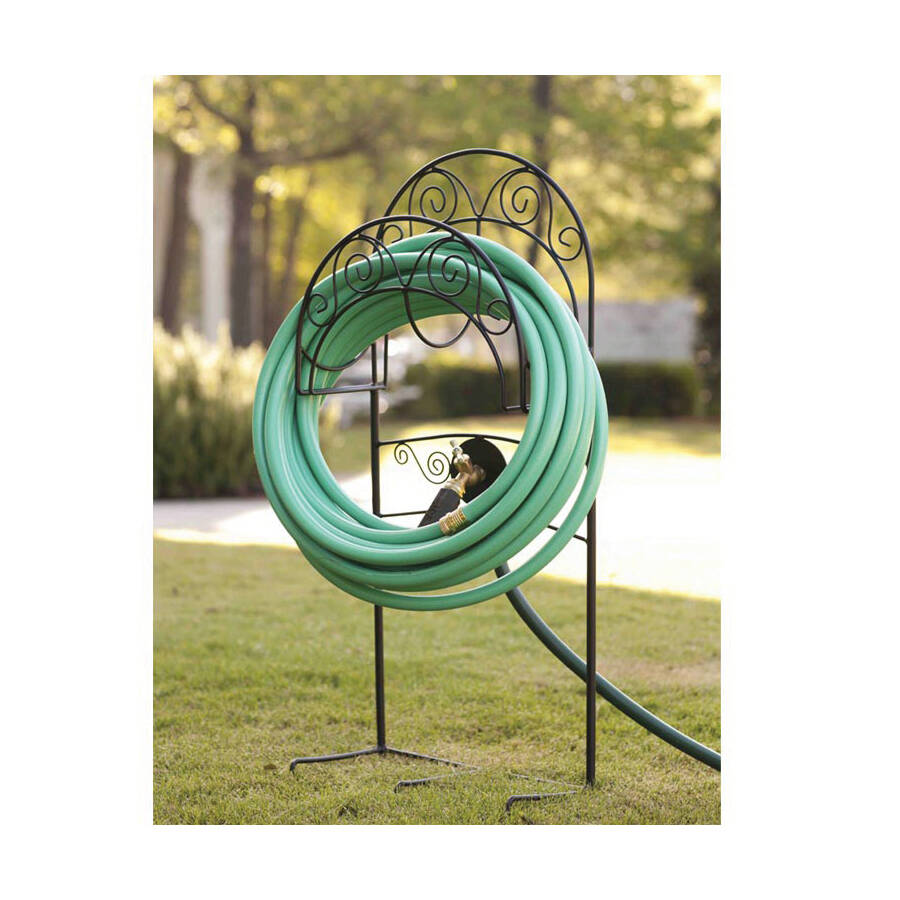 Liberty Garden Carrington Hose Stand, 125 ft Capacity, 5/8 in Hose, Steel, Powder-Coated, Black, 9 in Overall Length, 15.13 in Overall Width, 42.63 in Overall Height, Includes: Brass Bib