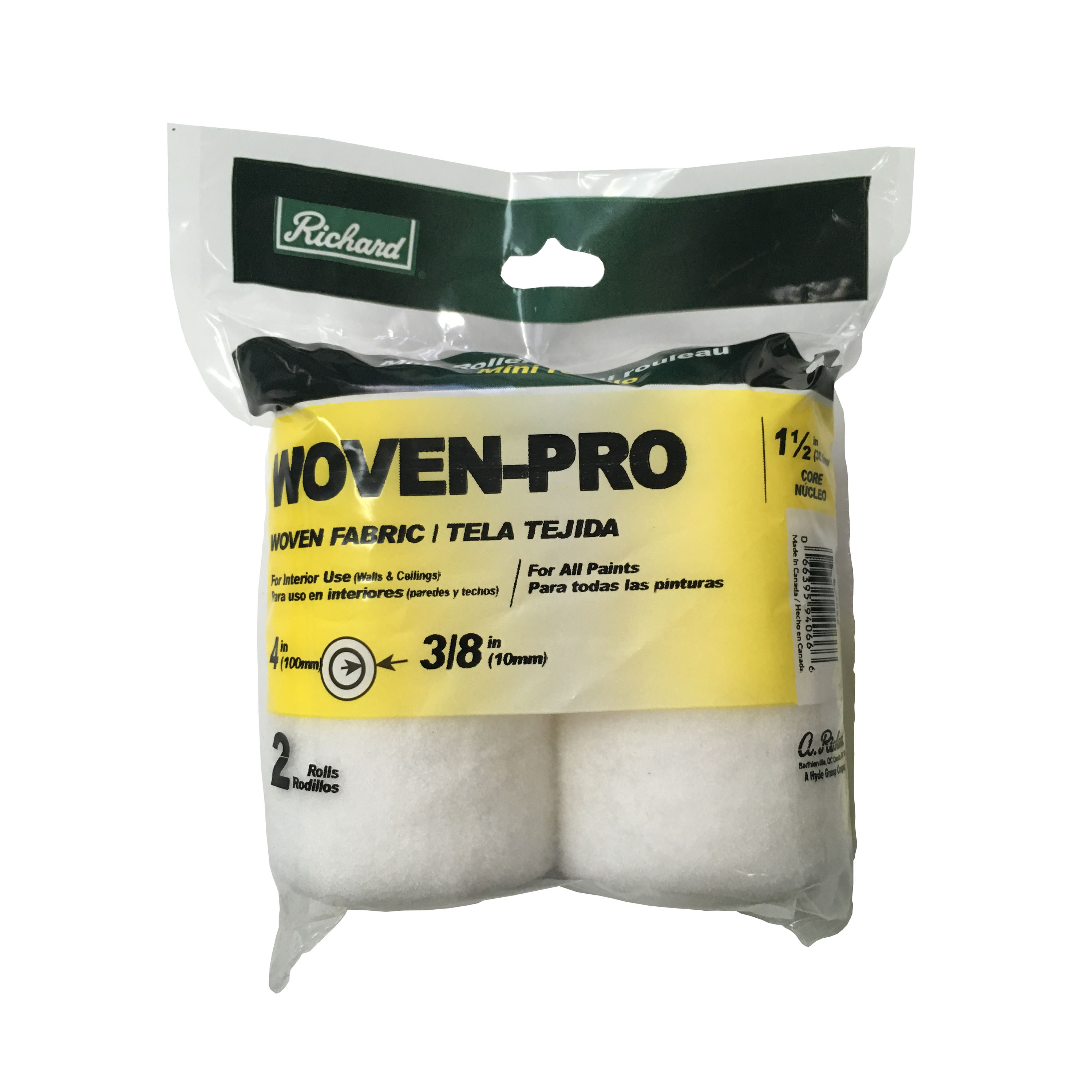 4-Inch Woven-Pro Series Paint Roller Cover, 3/8-Inch Pile 2-Pack