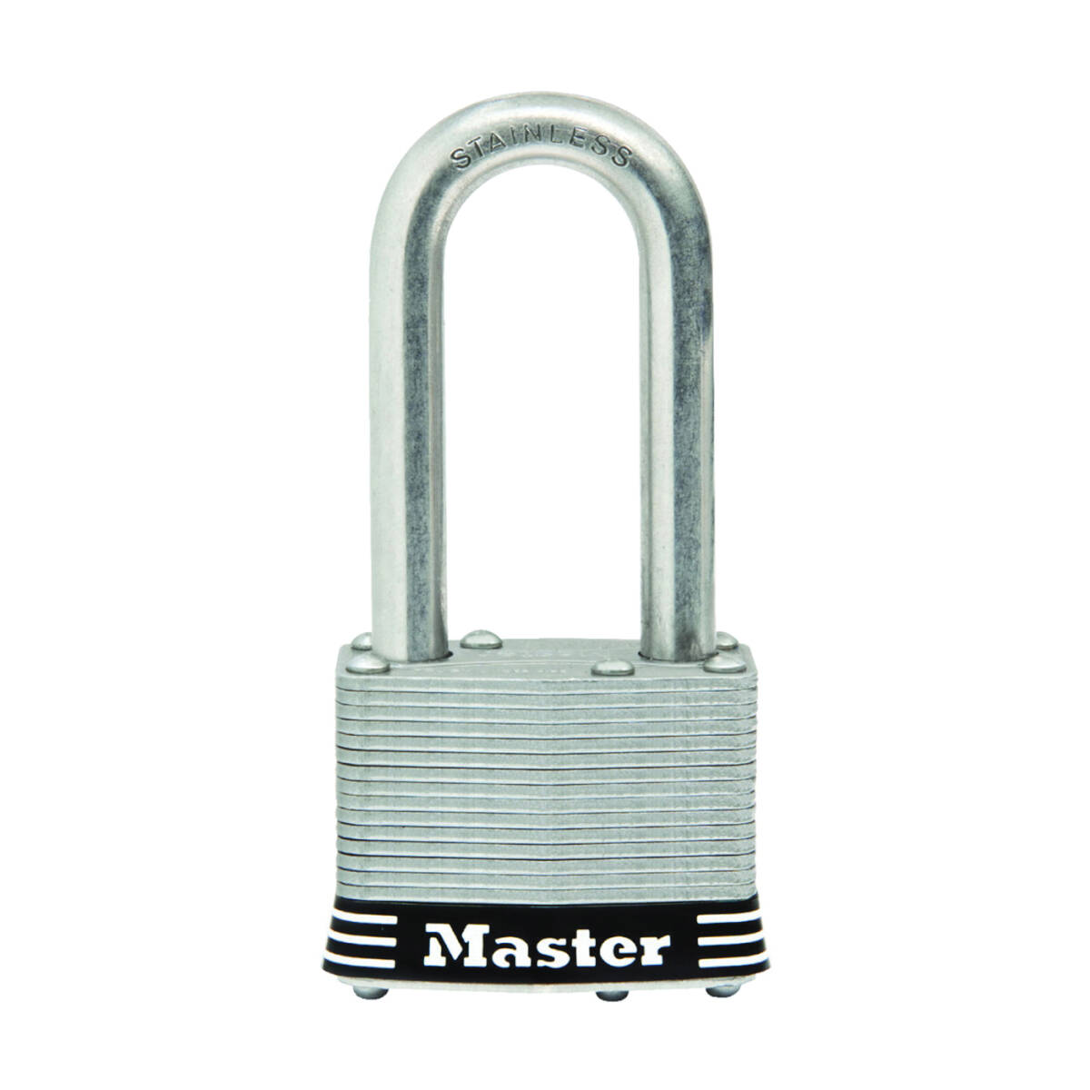 Stainless steel lock body and shackle delivers the maximum weather resistance available. 1-3/4 in (44 mm) wide. Brass 4-pin tumbler cylinder for increased weather and pick resistance. Double locking levers for increased pry resistance.