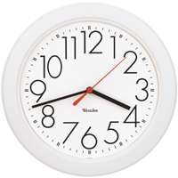 Clock, 10 in Dia, Round, White Frame, Plastic Clock Face, Analog
