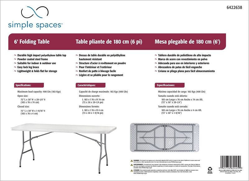 | Folding Size | 72 in L x 30 in W x 1-9/16 in H |