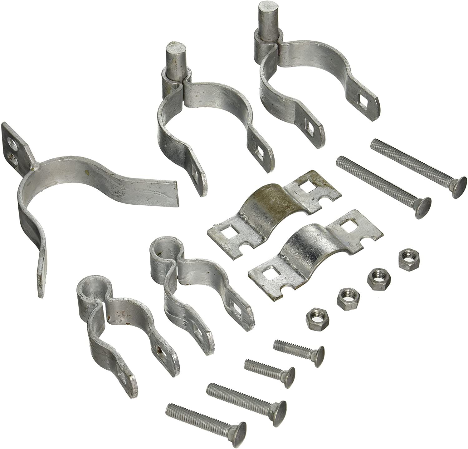 • Includes two 2-3/8 in x 5/8 in post hinge, two 1-3/8 in x 5/8 in frame hinge, one 2-3/8 in x 1-3/8 in fork latch and four nuts and bolts