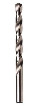 High speed steel with M-35, five percent cobalt, for higher heat and abrasion resistance; heavy duty web construction for strength and durability. Split point begins drilling immediately, minimizing bit walk when used in applications such as metal drilling, including heavy duty abrasive alloy metal drilling on hardened steel (heat-treated).