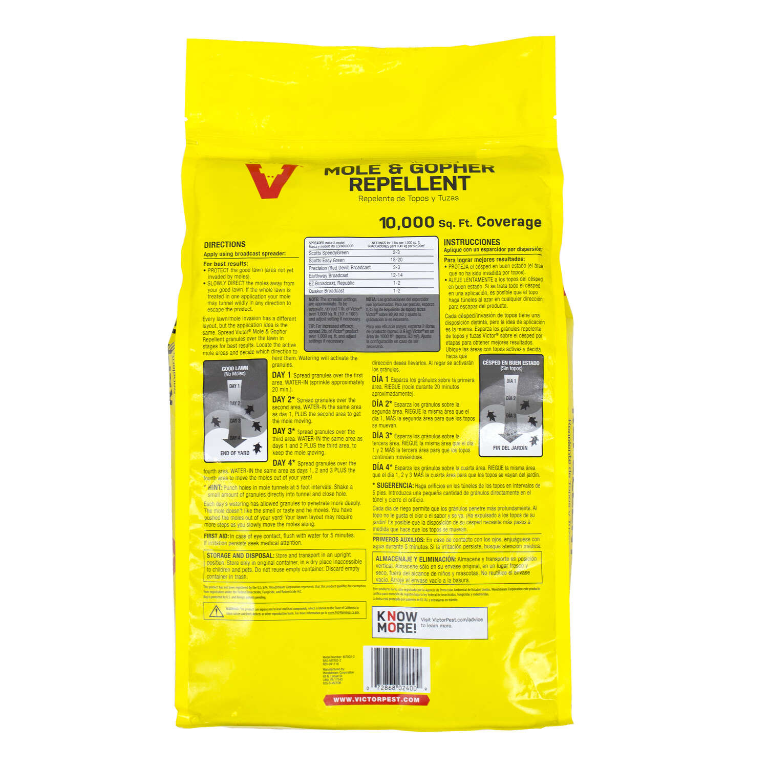 DUAL-ACTION REPELLING:Victor® Dual-Action Mole & Gopher Repellent works by slowly driving burrowing animals away in stages. The fast-acting formula targets multiple senses for dual-action repelling. Once inside the tunnel, the granules make everything in the tunnel smell and taste unpleasant, sending the unwanted pests scurrying to find a more favorable place to live.TUNNEL-PENETRATING FORMULA:Made with specially engineered castor oil pellets, this repellent is easily absorbed into the ground, allowing the granules to reach the tunnel quickly. The trick is in the application process – daily watering of the granules allows them to penetrate further into the tunnels. The 10 lb bag provides up to 10,000 total square feet of coverage.ALL NATURAL:Not only is Victor® Dual-Action Mole & Gopher Repellent effective and easy to use, but you can also feel confident in the knowledge that it’s all natural. In addition, this repellent formula is safe for use around your family and pets, as well as the environment when used as directed.See package for extended warnings, directions, environmental impact, first aid, and/or storage & disposal information prior use.