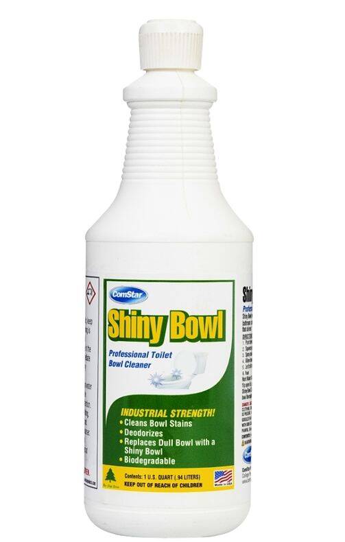 Shiny Bowl is a professional toilet bowl cleaner. Shiny Bowl removes heavy mineral bowl stains, dirt and grime. Leaves bathroom smelling clean and fresh. It replaces a dull look with one that shines! Used by maintenance professionals.