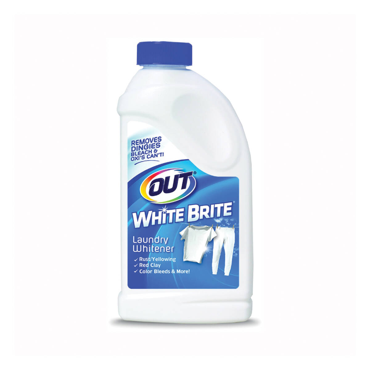 OUT® White Brite® laundry whitener brightens and removes the dingies bleach and oxis can't. Dingy whites caused by rust stains and yellowing, stubborn red clay and red dirt, unfortunate color bleeds and even iron-fortified baby formula stains have all met their match with this effective laundry whitener. Ideal for regions with high iron and red clay, White Brite eliminates stubborn red clay or red dirt stains. It works great on white baseball pants and other white sports uniforms and it also reverses unfortunate color bleeds. White Brite is safer than bleach for use on white and colorfast fabrics, including delicates and can safely be used in all washing machines. White Brite delivers the results you are looking for cleaner, brighter, fresher laundry.