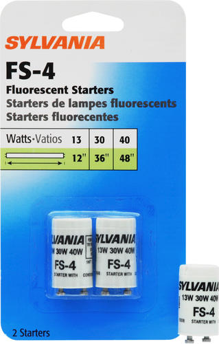 The most common applications for the Sylvania FS-4 Fluorescent Starters are fluorescent fixtures. These starters come in a convenient 2-pack.