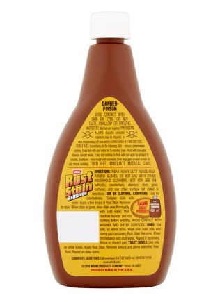 This convenient liquid formula quickly and easily removes rust stains from white sinks and white toilets, as well as colorfast fabric and carpets.