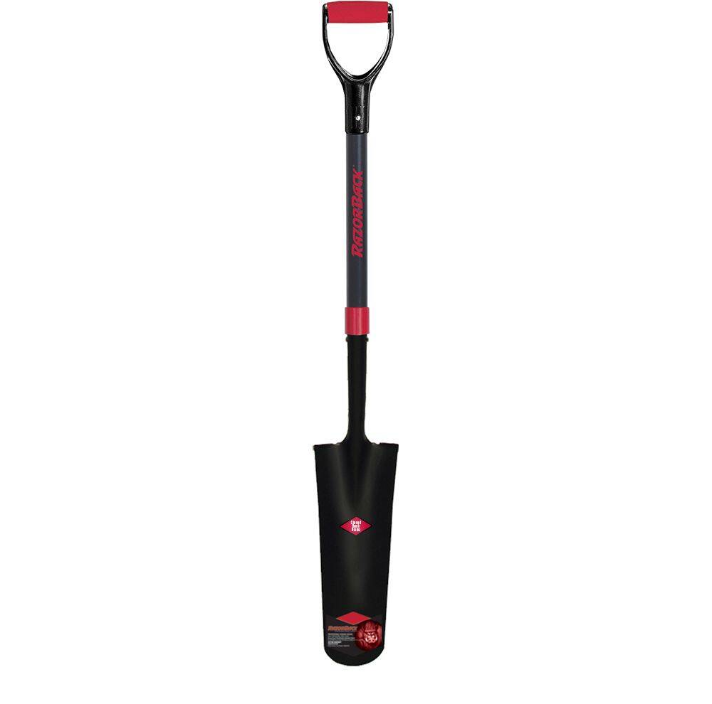 The Razor-Back drain spade is designed for digging narrow trenches and cleaning out previously dug ditches. It is also great for transplanting live trees and shrubs. The features consist of a forward turned step, 14-gauge closed-back blade with crimp collar, 9-inch socket, and 30-inch fiberglass handle with cushion D-grip. The construction of this tool is durable, reliable, and dependable to service users for years to come.