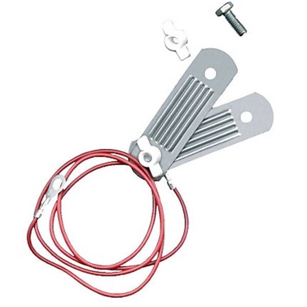 For connecting a fence charger to polytape. This clamp connects the fence charger connects the fence charger to polytape anywhere in the fence line where an electrical connector plate is inaccessible. Connects the polytape to the energizer.