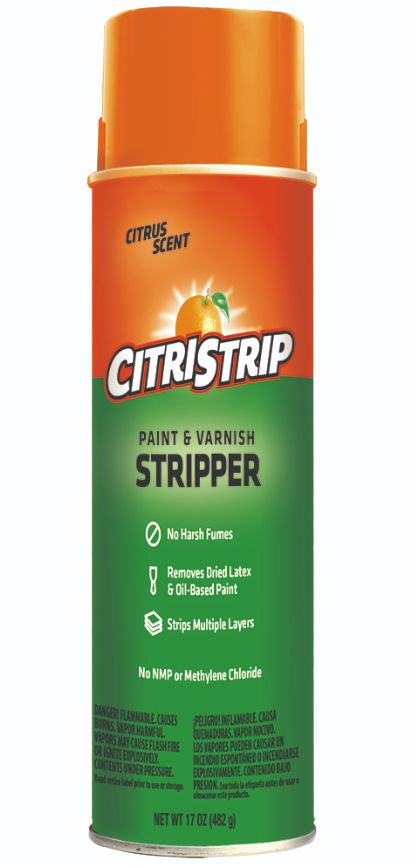When you need to strip hard-to-reach surfaces, in crevices and grooves, or intricately carved moldings, Citristrip Aerosol sprays on easily and evenly. It stays wet and active for up to 24 hours allowing stripping of multiple layers in one step. It removes five layers of dried latex paint in under one hour. It contains no methylene chloride or NMP (N-Methylpyrrolidone) and is safe for indoor use.