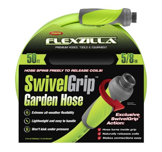 Flexzilla makes it easier to work around your home and lawn. SwivelGrip action eleminates twists that occur when uncoiling a hose. Conventional garden hose can trap coils that tighten into kinks as you move across the yard. SwivelGrip releases these trapped coils because the hose rotates freely inside the grip. The large, comfortable gripping surface on both ends of the hose makes connections much easier to turn and tighten. Plus, with our superior O-ring you get a long term, leak free connection at the spigot. SwivelGrip hoses are also drinking water safe. (Limited Lifetime Warranty)