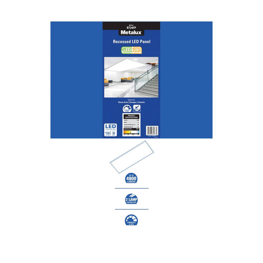 Metalux LED Flat Panel Troffer, 120 to 277 VAC, 41 W Wattage, LED Lamp, 60,000 hr Average Life, 80 CRI, 4000 K Color Temperature, 4500 Lumens, Cool White Light, Electronic/0 to 10 V Dimming Ballast/Driver Type, White Fixture Color, Dimensions: 47-3/4 in H x 23-3/4 in W x 2 in D