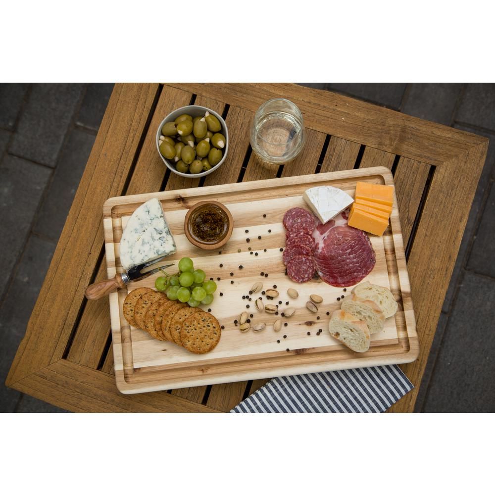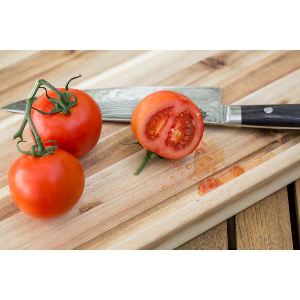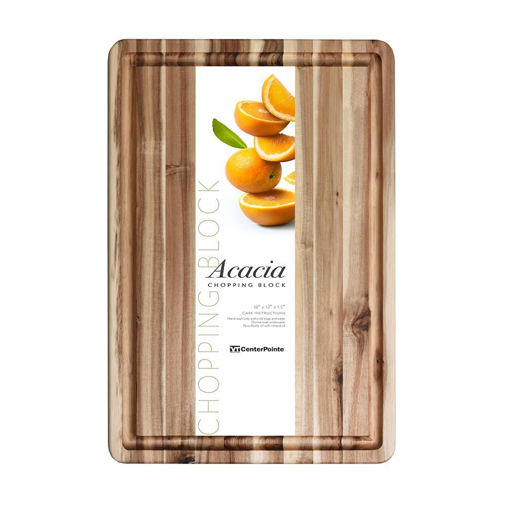 The rich beauty and design of the CenterPointe Acacia reversible chopping block is the perfect tool your kitchen demands. This heavy-duty chopping block allows you to cut, chop, prep, and serve all on the same board. Clean-up is made simple with the built-in drip groove preventing liquids from dripping off the edge. Acacia wood acts as a nurse crop for native forest regeneration by enriching and fertilizing the soil.
