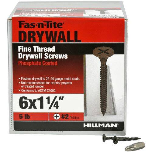 Fas-n-Tite® Fine Drywall Screws are used to fasten drywall to either wood or metal. The screw's sharp tip is ideal for piercing sturdy materials such as wood or metal.