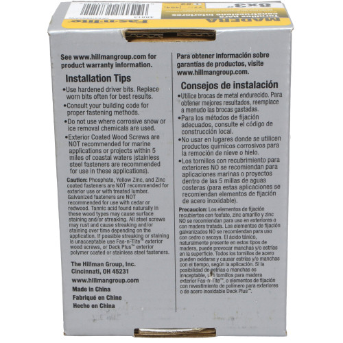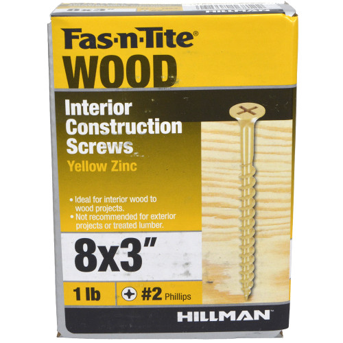 #8 x 3-Inch Fas-N-Tite Interior Yellow Zinc Construction Wood Screws 5-Pound