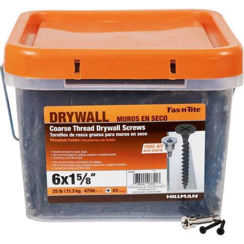 Fas-n-Tite® Coarse Drywall Screws are used to fasten drywall to either wood or metal. The screw's sharp tip is ideal for piercing sturdy materials such as wood or metal.