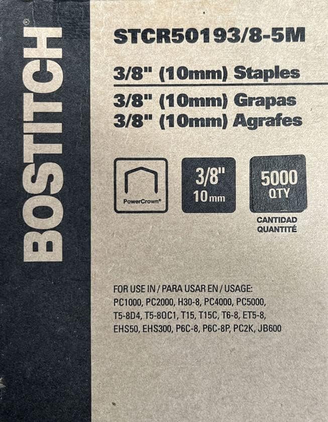 7/16 in crown. For use with Bostitch PC1000, PC2000, PC4000, PC5000, H30-8 and P6C-8 tackers. STCR50191/2-4M and STCR50191/2-1M do not fit H30-8 or P6C-8 tackers. STCR50191/2-1M also fits PC3000.