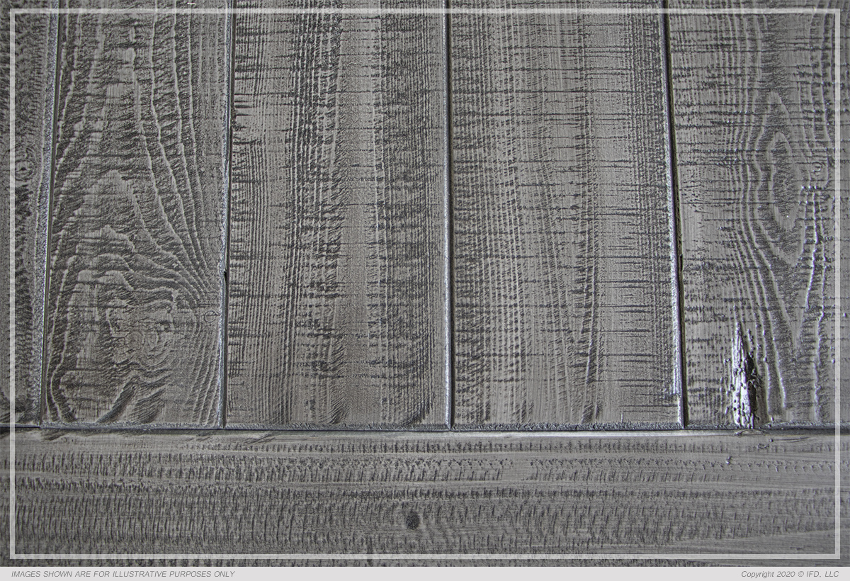 • Two-tone, multi-step lacquer finish. Tops feature weathered gray finish on hand- distressed wood and an Ivory antiqued finish on the rest of the case pieces