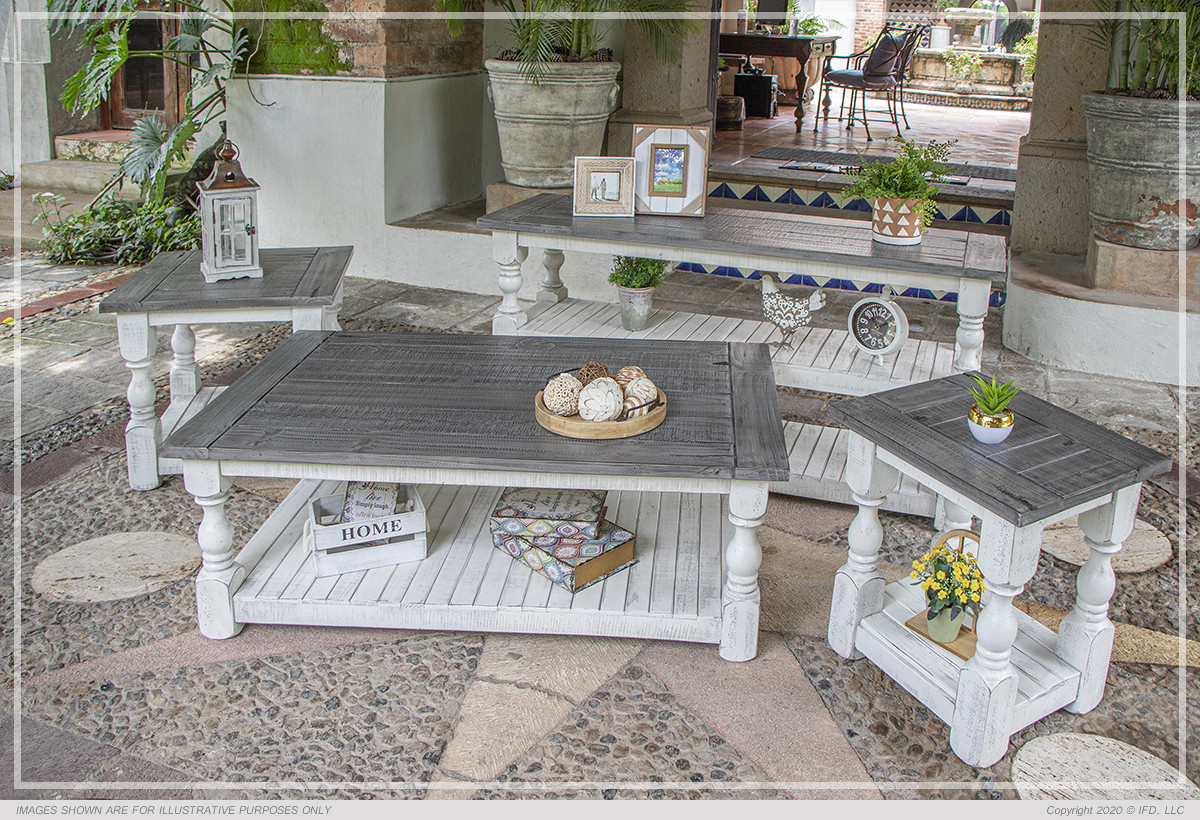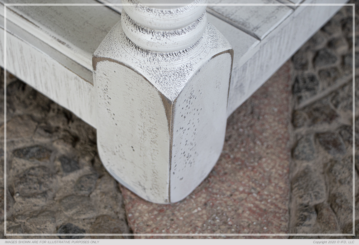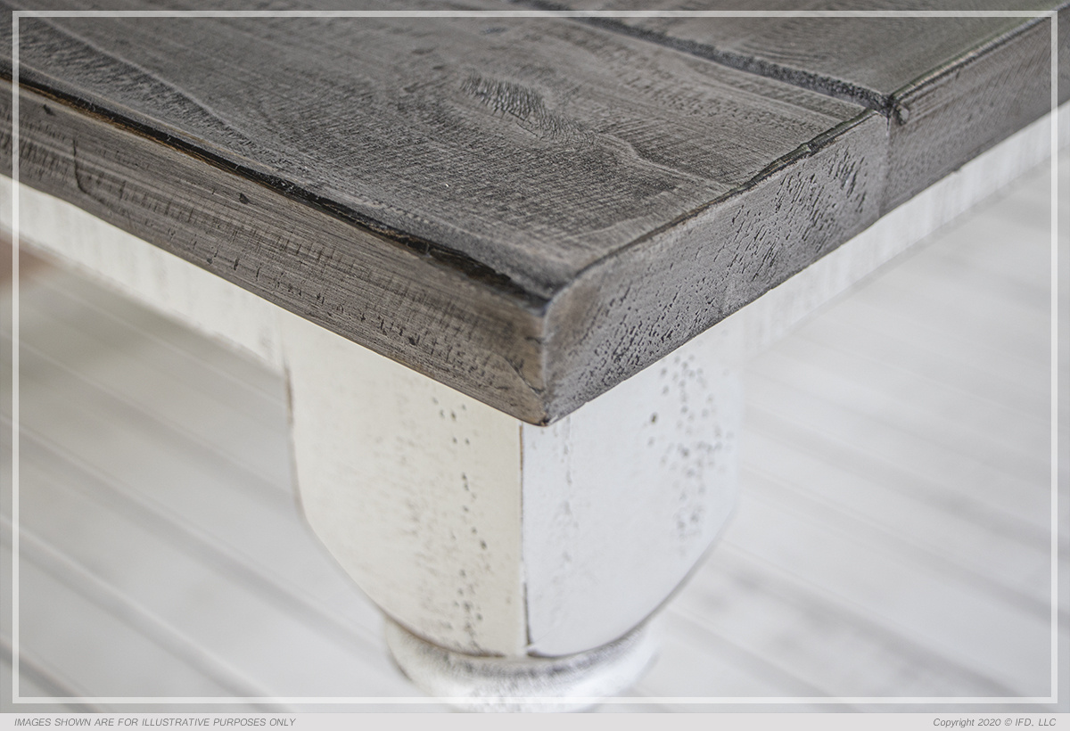 Exuding farmhouse chic with just the right touch of old-world charm, the Stone Collection is meticulously crafted from solid pine wood. The wood is lightly distressed, showcasing a white finish and complemented by weathered gray tops.
