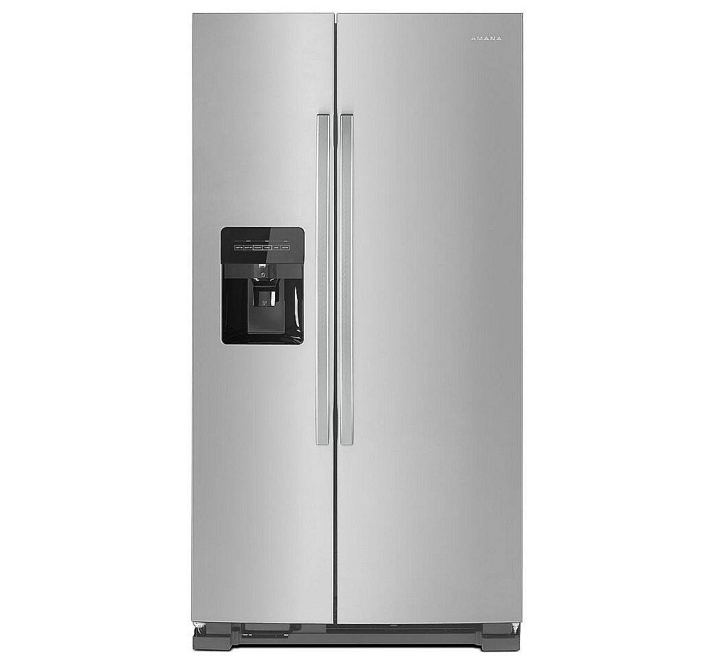 Our 36-inch Amana Side-by-Side Refrigerator makes food storage simple. This 25 Cu. Ft. refrigerator with ice and water dispenser lets you grab fresh H2O and go using a Dual Pad Dispenser with EveryDrop Water Filter. Easily set temps with Electronic Temperature Controls. And big items like juice cartons fit in the Gallon Door Storage Bins to stay in sipping range.