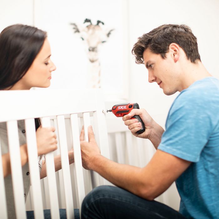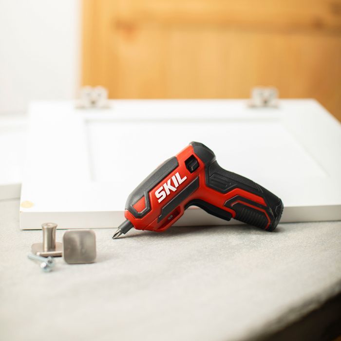 It may be a small drill, but the SKIL® Rechargeable 4V Screwdriver's power and features are mighty! The two-finger trigger makes getting started easy, and an integrated lithium-ion battery is ready when you are . The LED work light illuminates dark spaces so you're always hitting the right marks.