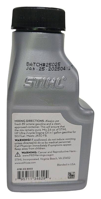 No matter how you slice it (or trim it or shred it), there's no better protection for your high performance 2-stroke engine than STIHL HP Ultra Oil. This 2-cycle engine oil has outstanding engine cleaning characteristics, plus ultra lubricating qualities that are superior to other 2-cycle engine oils. This fully synthetic oil is also highly biodegradable, degrading by 80% in 21 days. Were so confident this oil will protect your engine, well double your STIHL limited warranty when you use it. It's that good.